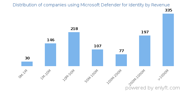We have data on 1,178 companies that use Microsoft Defender for Identity. The companies using Microsoft Defender for Identity are most often found in United States and in the Information Technology and Services industry. Microsoft Defender for Identity is most often used by companies with >10000 employees and >1000M dollars in revenue. Our data for Microsoft Defender for Identity usage goes back as far as 4 years and 9 months.