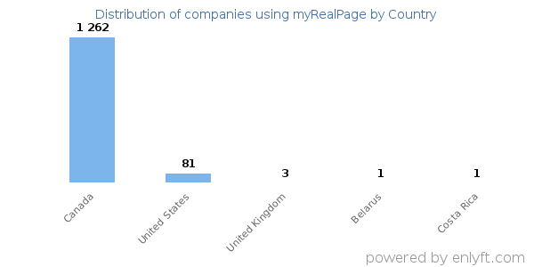 74% of myRealPage customers are in Canada, 10% are in United States, 5% are in United Kingdom, 5% are in Belarus and 5% are in Costa Rica.