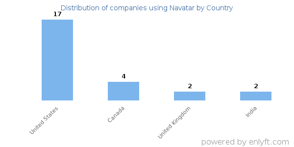 We have data on 25 companies that use Navatar. The companies using Navatar are most often found in United States and in the Investment Management industry. Navatar is most often used by companies with 10-50 employees and 10M-50M dollars in revenue. Our data for Navatar usage goes back as far as 3 years and 2 months.