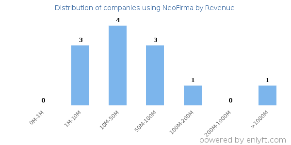 We have data on 12 companies that use NeoFirma. The companies using NeoFirma are most often found in United States and in the Oil & Energy industry. NeoFirma is most often used by companies with 50-200 employees and 10M-50M dollars in revenue. Our data for NeoFirma usage goes back as far as 8 years and 2 months.
