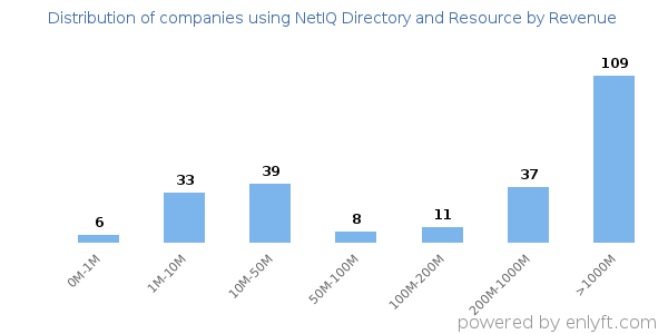 Of all the customers that are using NetIQ Directory and Resource, a majority (59%) are large (>$1000M), 29% are small (<$50M) and 0% are medium-sized.