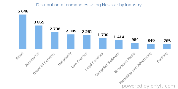 We have data on 56,383 companies that use Neustar. The companies using Neustar are most often found in United States and in the Retail industry. Neustar is most often used by companies with 1-10 employees and 1M-10M dollars in revenue. Our data for Neustar usage goes back as far as 9 years and 10 months.