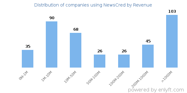 We have data on 442 companies that use NewsCred. The companies using NewsCred are most often found in United States and in the Accounting industry. NewsCred is most often used by companies with >10000 employees and >1000M dollars in revenue. Our data for NewsCred usage goes back as far as 8 years and 6 months.