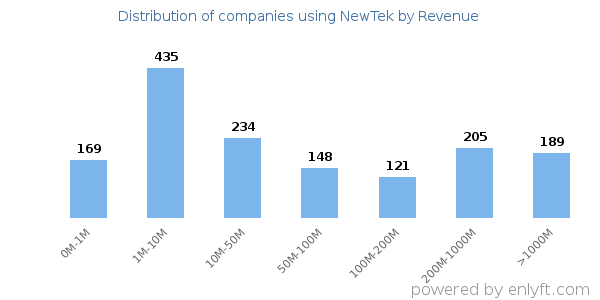 Of all the customers that are using NewTek, a majority (54%) are small (<$50M), 27% are large (>$1000M) and 10% are medium-sized.