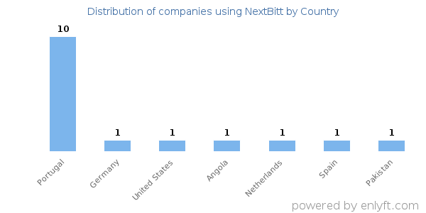 We have data on 16 companies that use NextBitt. The companies using NextBitt are most often found in Portugal and in the Banking industry. NextBitt is most often used by companies with >10000 employees and >1000M dollars in revenue. Our data for NextBitt usage goes back as far as 8 years and 5 months.