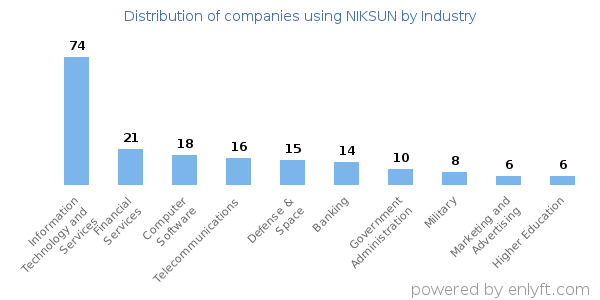 Looking at NIKSUN customers by industry, we find that Information Technology and Services (27%), Financial Services (7%), Computer Software (6%), Telecommunications (6%) and Defense & Space (5%) are the largest segments.