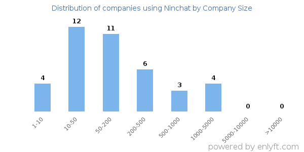 Of all the customers that are using Ninchat, a majority (58%) are small (<$50M), 0% are large (>$1000M) and 20% are medium-sized.
