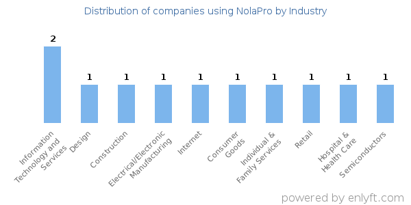 We have data on 12 companies that use NolaPro. The companies using NolaPro are most often found in United States and in the Information Technology and Services industry. NolaPro is most often used by companies with 10-50 employees and 1M-10M dollars in revenue. Our data for NolaPro usage goes back as far as 8 years and 3 months.