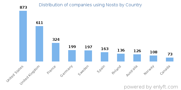 We have data on 3,637 companies that use Nosto. The companies using Nosto are most often found in United States and in the Retail industry. Nosto is most often used by companies with 1-10 employees and 1M-10M dollars in revenue. Our data for Nosto usage goes back as far as 8 years and 10 months.