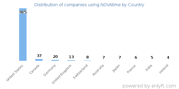 We have data on 1,051 companies that use NOVAtime. The companies using NOVAtime are most often found in United States and in the Hospital & Health Care industry. NOVAtime is most often used by companies with 50-200 employees and 10M-50M dollars in revenue. Our data for NOVAtime usage goes back as far as 9 years and 11 months.