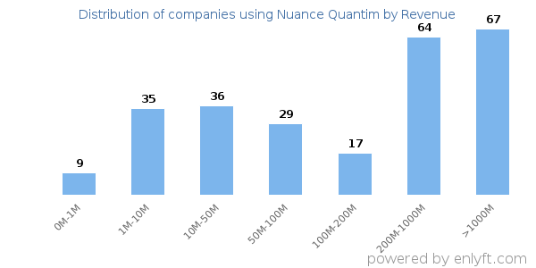 Of all the customers that are using Nuance Quantim, 27% are small (<$50M), 17% are medium-sized and 49% are large (>$1000M).