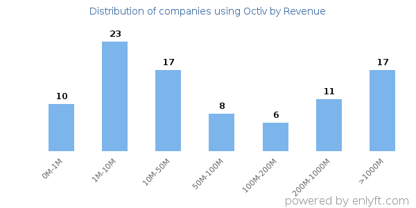 Of all the customers that are using Octiv, a majority (50%) are small (<$50M), 28% are large (>$1000M) and 8% are medium-sized.