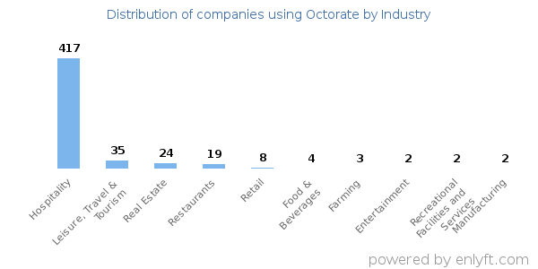 Looking at Octorate customers by industry, we find that Hospitality (47%) and Leisure, Travel & Tourism (6%) are the largest segments.
