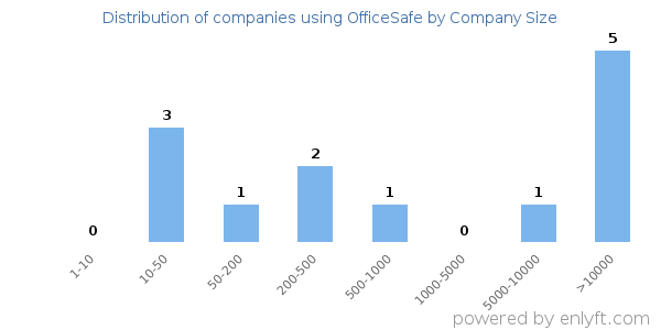 We have data on 13 companies that use OfficeSafe. The companies using OfficeSafe are most often found in United States and in the Financial Services industry. OfficeSafe is most often used by companies with >10000 employees and 200M-1000M dollars in revenue. Our data for OfficeSafe usage goes back as far as 3 years and 7 months.