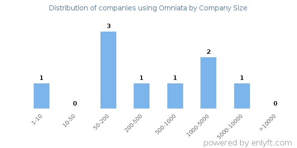 Of all the customers that are using Omniata, 2% are small (<50 employees), 26% are medium-sized and 14% are large (>1000 employees).