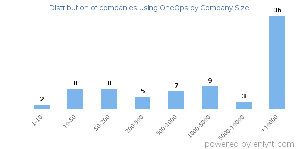 We have data on 83 companies that use OneOps. The companies using OneOps are most often found in United States and in the Information Technology and Services industry. OneOps is most often used by companies with >10000 employees and >1000M dollars in revenue. Our data for OneOps usage goes back as far as 2 years and 9 months.