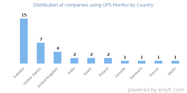 36% of OP5 Monitor customers are in Sweden, 16% are in United States and 8% are in United Kingdom.