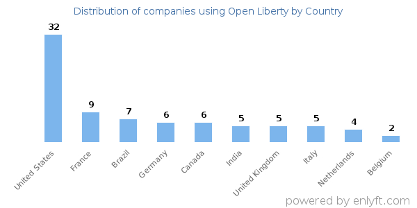 We have data on 105 companies that use Open Liberty. The companies using Open Liberty are most often found in United States and in the Information Technology and Services industry. Open Liberty is most often used by companies with >10000 employees and >1000M dollars in revenue. Our data for Open Liberty usage goes back as far as 5 years and 3 months.