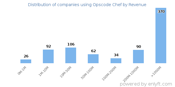 Of all the customers that are using Opscode Chef, a majority (58%) are large (>$1000M), 25% are small (<$50M) and 8% are medium-sized.