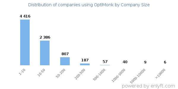 We have data on 10,641 companies that use OptiMonk. The companies using OptiMonk are most often found in United States and in the Retail industry. OptiMonk is most often used by companies with 1-10 employees and 1M-10M dollars in revenue. Our data for OptiMonk usage goes back as far as 8 years and 10 months.