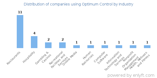 We have data on 32 companies that use Optimum Control. The companies using Optimum Control are most often found in United States and in the Restaurants industry. Optimum Control is most often used by companies with 10-50 employees and 10M-50M dollars in revenue. Our data for Optimum Control usage goes back as far as 8 years and 5 months.