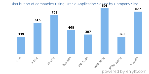 We have data on 4,808 companies that use Oracle Application Server. The companies using Oracle Application Server are most often found in United States and in the Information Technology and Services industry. Oracle Application Server is most often used by companies with 1000-5000 employees and >1000M dollars in revenue. Our data for Oracle Application Server usage goes back as far as 10 years and 3 months.