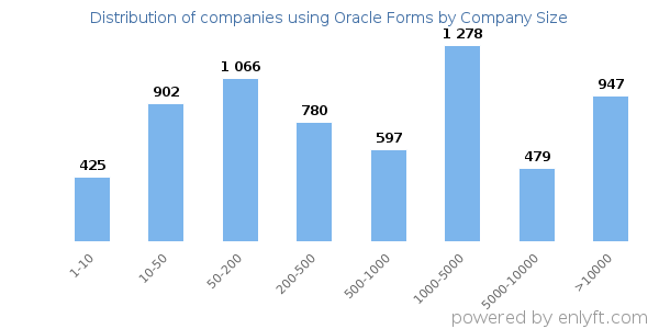 Of all the customers that are using Oracle Forms, 21% are small (<50 employees), 37% are medium-sized and 42% are large (>1000 employees).