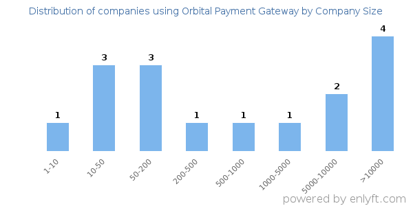 Of all the customers that are using Orbital Payment Gateway, 14% are small (<50 employees), 15% are medium-sized and 28% are large (>1000 employees).