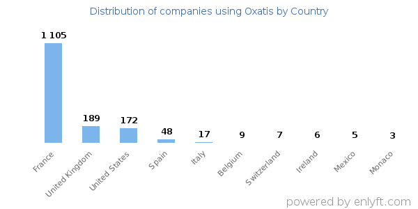 53% of Oxatis customers are in France, 10% are in United Kingdom and 9% are in United States.
