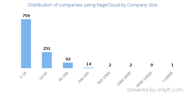 We have data on 1,494 companies that use PageCloud. PageCloud is most often used by companies with 1-10 employees and 1M-10M dollars in revenue. Our data for PageCloud usage goes back as far as 5 years and 2 months.