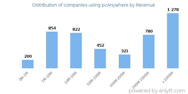 Of all the customers that are using pcAnywhere, 35% are small (<$50M), 17% are medium-sized and 43% are large (>$1000M).
