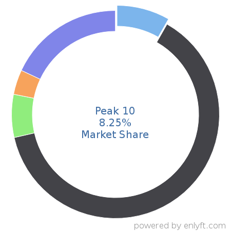 We use the best indexing techniques combined with advanced data science to monitor the market share of over 15,000 technology products, including Data Storage Management. By scanning billions of public documents, we are able to collect deep insights on every company, with over 100 data fields per company at an average. In the Data Storage Management category, Peak 10 has a market share of about 8.2%. Other major and competing products in this category include: