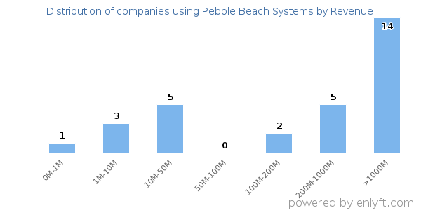 Of all the customers that are using Pebble Beach Systems, a majority (55%) are large (>$1000M), 20% are small (<$50M) and 0% are medium-sized.