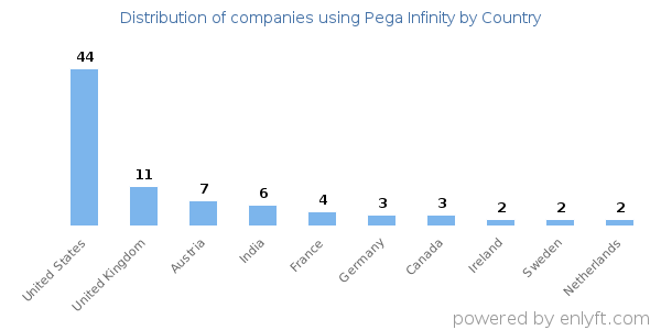 47% of Pega Infinity customers are in United States, 11% are in United Kingdom, 7% are in Austria and 6% are in India.