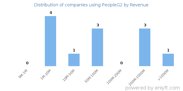 Of all the customers that are using PeopleG2, 27% are small (<$50M), 18% are medium-sized and 18% are large (>$1000M).