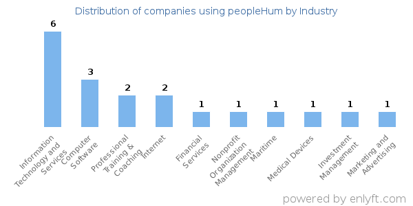 We have data on 24 companies that use peopleHum. The companies using peopleHum are most often found in United States and in the Information Technology and Services industry. peopleHum is most often used by companies with 50-200 employees and 10M-50M dollars in revenue. Our data for peopleHum usage goes back as far as 3 years and 3 months.