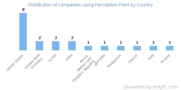 We have data on 29 companies that use Perception Point. The companies using Perception Point are most often found in United States and in the Information Technology and Services industry. Perception Point is most often used by companies with 10-50 employees and 1M-10M dollars in revenue. Our data for Perception Point usage goes back as far as 3 years.