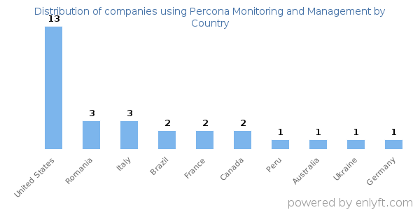 We have data on 36 companies that use Percona Monitoring and Management. The companies using Percona Monitoring and Management are most often found in United States and in the Information Technology and Services industry. Percona Monitoring and Management is most often used by companies with >10000 employees and >1000M dollars in revenue. Our data for Percona Monitoring and Management usage goes back as far as 2 years and 1 months.