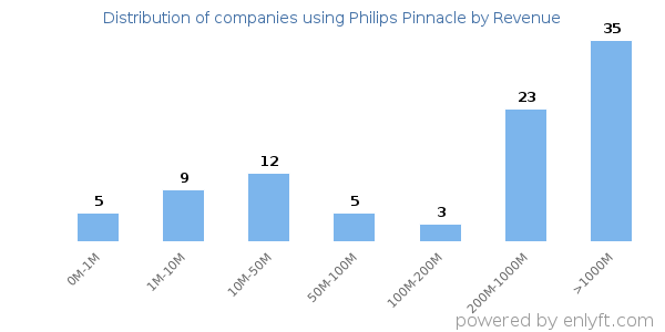 Of all the customers that are using Philips Pinnacle, a majority (60%) are large (>$1000M), 21% are small (<$50M) and 0% are medium-sized.