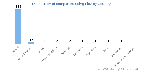 We have data on 402 companies that use Pipz. The companies using Pipz are most often found in Brazil and in the Information Technology and Services industry. Pipz is most often used by companies with 10-50 employees and 1M-10M dollars in revenue. Our data for Pipz usage goes back as far as 5 years and 2 months.