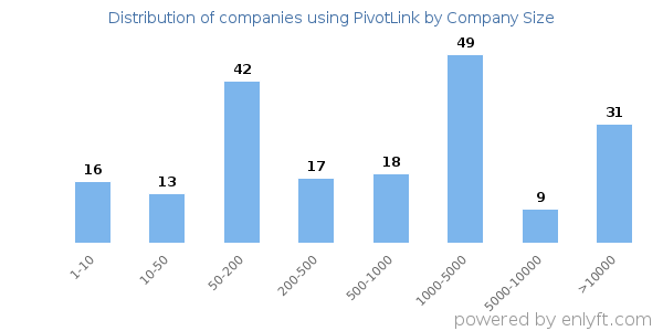 We have data on 197 companies that use PivotLink. The companies using PivotLink are most often found in United States and in the Retail industry. PivotLink is most often used by companies with 1000-5000 employees and 200M-1000M dollars in revenue. Our data for PivotLink usage goes back as far as 9 years and 9 months.