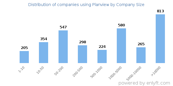We have data on 3,370 companies that use Planview. The companies using Planview are most often found in United States and in the Information Technology and Services industry. Planview is most often used by companies with >10000 employees and >1000M dollars in revenue. Our data for Planview usage goes back as far as 10 years and 2 months.