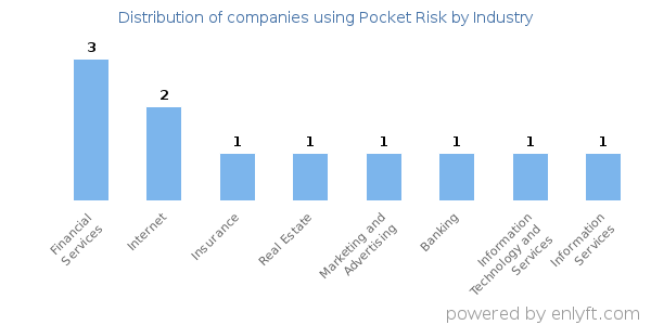 We have data on 12 companies that use Pocket Risk. The companies using Pocket Risk are most often found in United States and in the Financial Services industry. Pocket Risk is most often used by companies with 10-50 employees and >1000M dollars in revenue. Our data for Pocket Risk usage goes back as far as 8 years and 2 months.