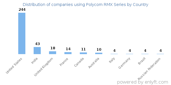 We have data on 405 companies that use Polycom RMX Series. The companies using Polycom RMX Series are most often found in United States and in the Information Technology and Services industry. Polycom RMX Series is most often used by companies with >10000 employees and >1000M dollars in revenue. Our data for Polycom RMX Series usage goes back as far as 9 years and 7 months.