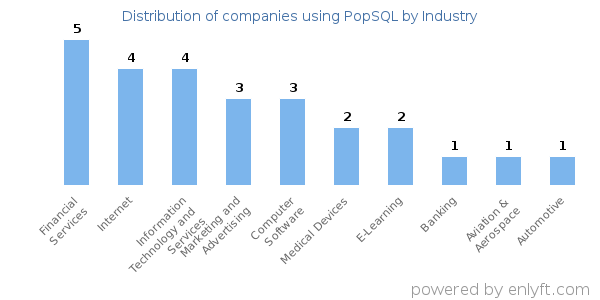 We have data on 35 companies that use PopSQL. The companies using PopSQL are most often found in United States and in the Financial Services industry. PopSQL is most often used by companies with >10000 employees and >1000M dollars in revenue. Our data for PopSQL usage goes back as far as 2 years and 1 months.