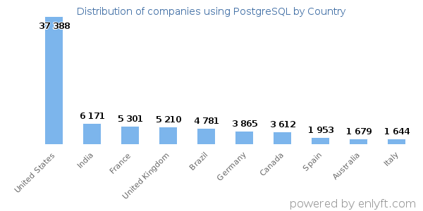 37% of PostgreSQL customers are in United States, 6% are in India, 5% are in France and 5% are in United Kingdom.