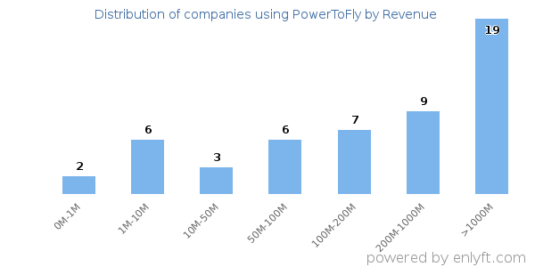We have data on 53 companies that use PowerToFly. The companies using PowerToFly are most often found in United States and in the Computer Software industry. PowerToFly is most often used by companies with >10000 employees and >1000M dollars in revenue. Our data for PowerToFly usage goes back as far as 8 years and 2 months.