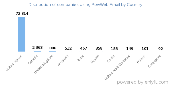 73% of PowWeb Email customers are in United States.