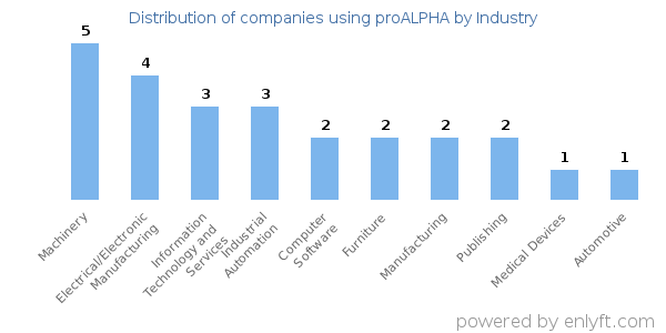 We have data on 40 companies that use proALPHA. The companies using proALPHA are most often found in Germany and in the Machinery industry. proALPHA is most often used by companies with 50-200 employees and 10M-50M dollars in revenue. Our data for proALPHA usage goes back as far as 2 years and 8 months.