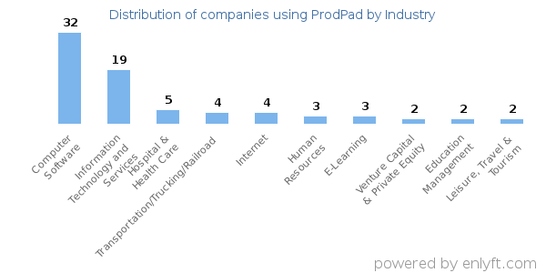 We have data on 119 companies that use ProdPad. The companies using ProdPad are most often found in United States and in the Computer Software industry. ProdPad is most often used by companies with 50-200 employees and 10M-50M dollars in revenue. Our data for ProdPad usage goes back as far as 8 years and 2 months.